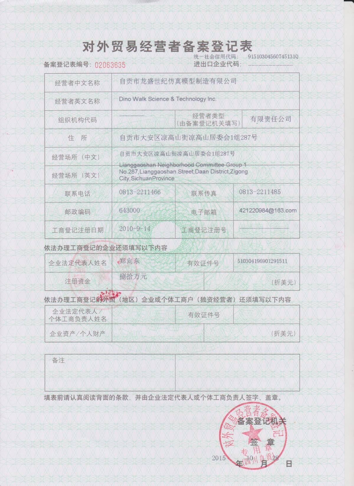 專業從事仿真恐龍、仿真動物、仿真昆蟲、恐龍骨架化石、景觀藝術雕塑、自貢彩燈等產品的設計、制作、銷售
